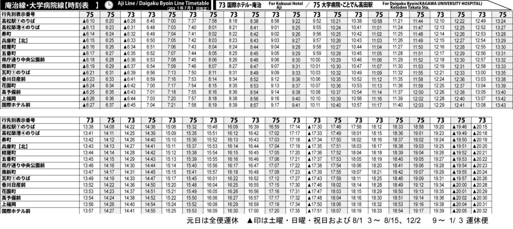 高松国際ホテルまでのバス時刻表(ことでんバス)